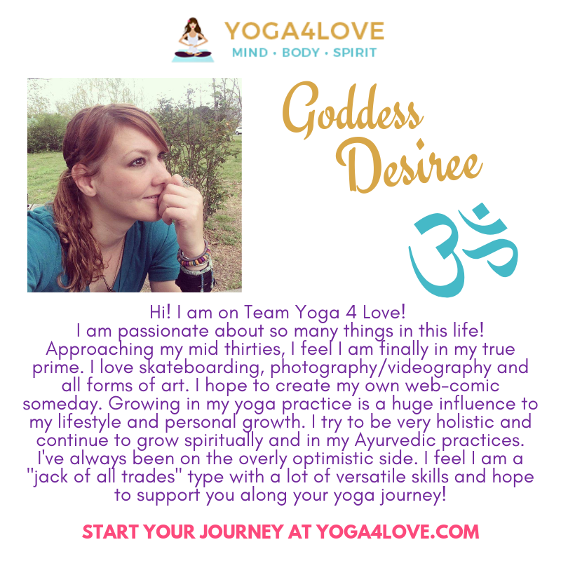 Hi! I am passionate about so many things in this life! Approaching my mid thirties, I feel I am finally in my true prime.. Growing in my yoga practice is a huge influence to my lifestyle and personal growth. I try to be very holistic and continue to grow spiritually and in my Ayurvedic practices. I've always been on the overly optimistic side. I feel I am a ‘jack of all trades’ type with a lot of versatile skills and hope to support you along your yoga journey! I am a graduate of the Inner Goddess 200 Hour Certification and now have my 200 RYT!